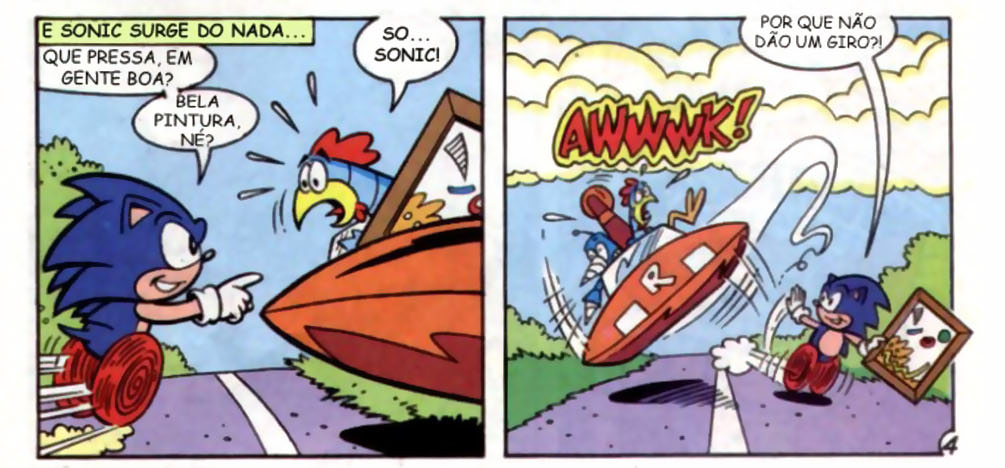 Já em Sonic... Parado no Tempo, vemos que Sonic já estragava os planos de Robotinick muito antes de seus dentes da frente nascerem!