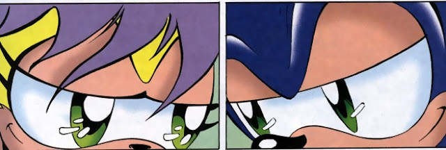 | Em outro ponto de Mobius, Charmy e Safron são a única esperança de Knuckles que acabou por cair nas mãos de Gala-na e seus conselheiros... |